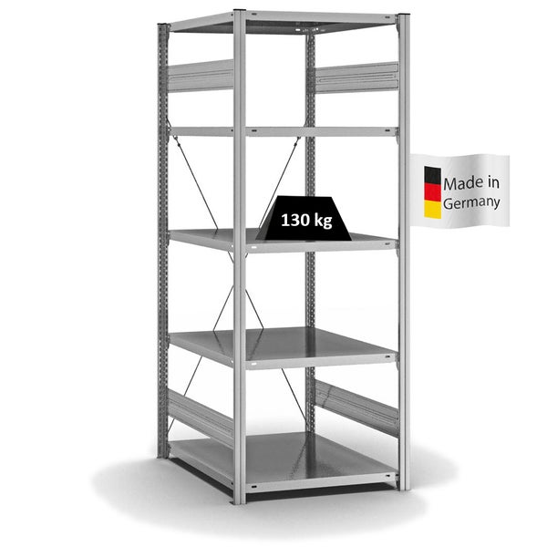 PROREGAL Fachbodenregal Stecksystem T-Profil Light-Duty Grundregal HxBxT 200 x 75 x 80 cm 5 Ebenen Fachlast 130 kg Einseitig Nutzbar Verzinkt