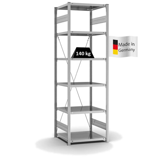 PROREGAL Fachbodenregal Stecksystem T-Profil Light-Duty Grundregal HxBxT 250 x 75 x 60 cm 6 Ebenen Fachlast 140 kg Einseitig Nutzbar Verzinkt