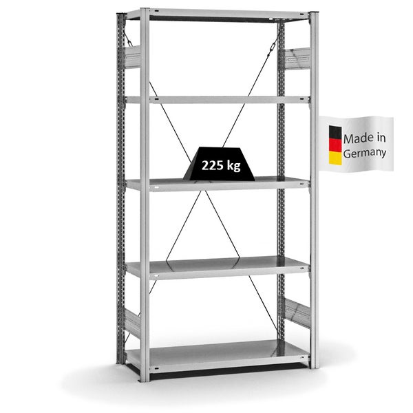 PROREGAL Fachbodenregal Stecksystem T-Profil Medium-Duty Grundregal HxBxT 200 x 100 x 40 cm 5 Ebenen Fachlast 225 kg Einseitig Nutzbar Verzinkt