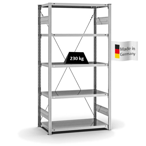 PROREGAL Fachbodenregal Stecksystem T-Profil Medium-Duty Grundregal HxBxT 200 x 100 x 50 cm 5 Ebenen Fachlast 230 kg Einseitig Nutzbar Verzinkt