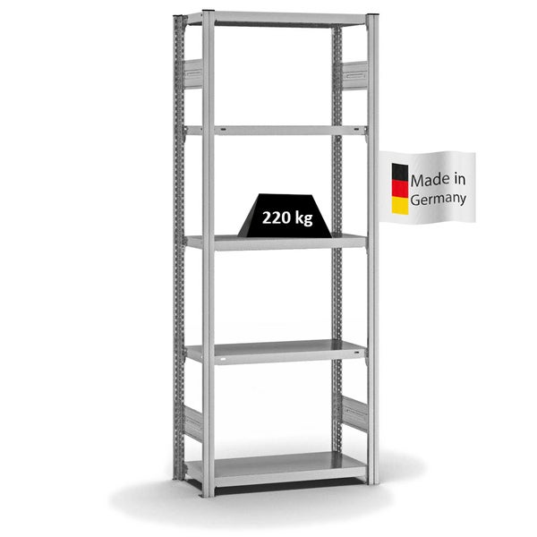 PROREGAL Fachbodenregal Stecksystem T-Profil Medium-Duty Grundregal HxBxT 200 x 75 x 30 cm 5 Ebenen Fachlast 220 kg Beidseitig Nutzbar Verzinkt