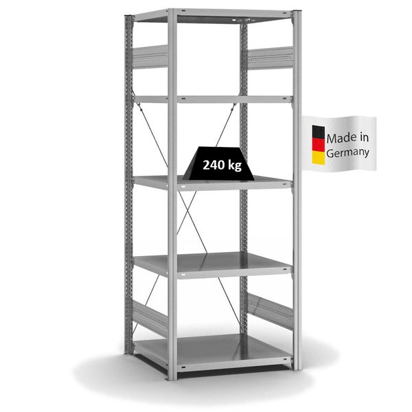 PROREGAL Fachbodenregal Stecksystem T-Profil Medium-Duty Grundregal HxBxT 200 x 75 x 60 cm 5 Ebenen Fachlast 240 kg Einseitig Nutzbar Verzinkt