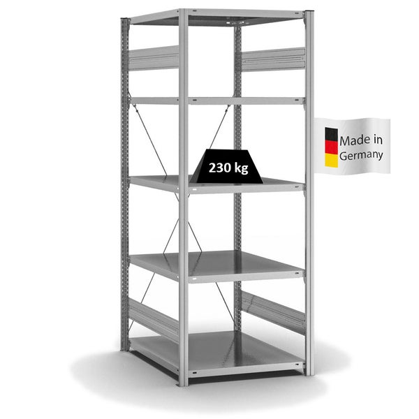 PROREGAL Fachbodenregal Stecksystem T-Profil Medium-Duty Grundregal HxBxT 200 x 75 x 80 cm 5 Ebenen Fachlast 230 kg Einseitig Nutzbar Verzinkt