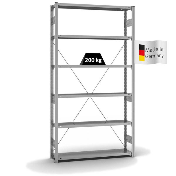 PROREGAL Fachbodenregal Stecksystem T-Profil Medium-Duty Grundregal HxBxT 250 x 130 x 30 cm 6 Ebenen Fachlast 200 kg Einseitig Nutzbar Verzinkt