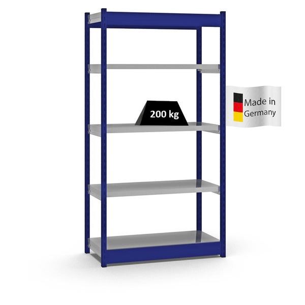 PROREGAL Fachbodenregal Stecksystem Vierkant-Profil Grundregal HxBxT 200 x 102,5 x 40 cm 5 Ebenen Einseitige Bauart Fachlast 200 kg Enzianblau