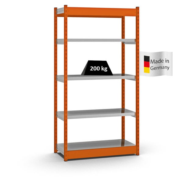 PROREGAL Fachbodenregal Stecksystem Vierkant-Profil Grundregal HxBxT 200 x 102,5 x 40 cm 5 Ebenen Einseitige Bauart Fachlast 200 kg Orange