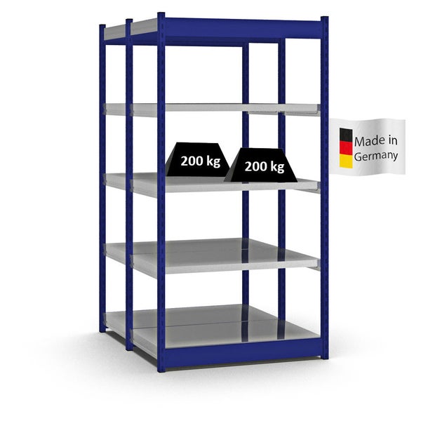 PROREGAL Fachbodenregal Stecksystem Vierkant-Profil Grundregal HxBxT 200 x 102,5 x 50 cm 2x5 Ebenen Doppelseitige Bauart Fachlast 200 kg Enzianblau