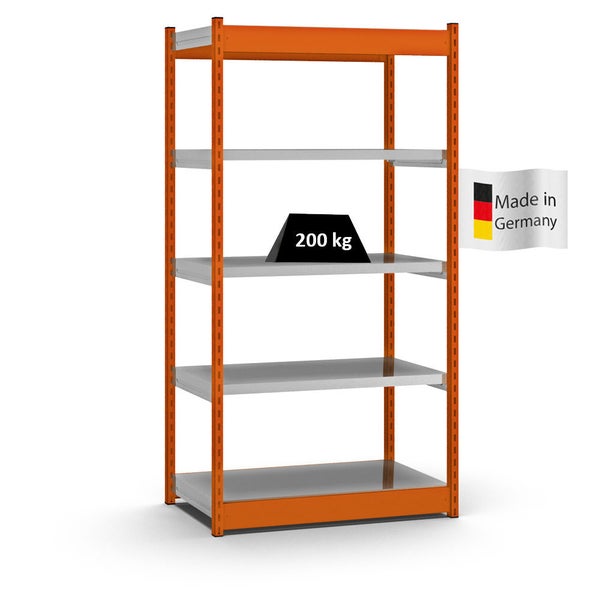 PROREGAL Fachbodenregal Stecksystem Vierkant-Profil Grundregal HxBxT 200 x 102,5 x 50 cm 5 Ebenen Einseitige Bauart Fachlast 200 kg Orange