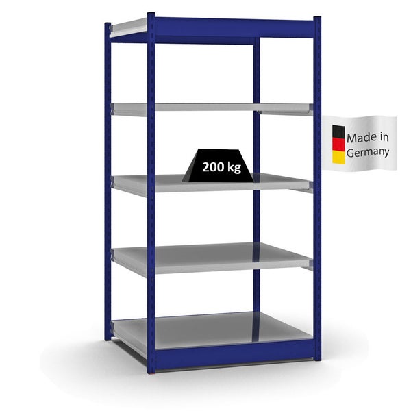 PROREGAL Fachbodenregal Stecksystem Vierkant-Profil Grundregal HxBxT 200 x 102,5 x 80 cm 5 Ebenen Einseitige Bauart Fachlast 200 kg Enzianblau