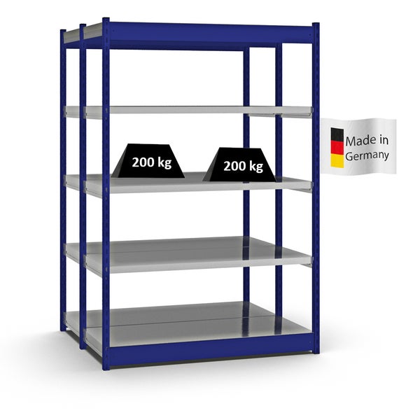 PROREGAL Fachbodenregal Stecksystem Vierkant-Profil Grundregal HxBxT 200 x 132,5 x 50 cm 2x5 Ebenen Doppelseitige Bauart Fachlast 200 kg Enzianblau