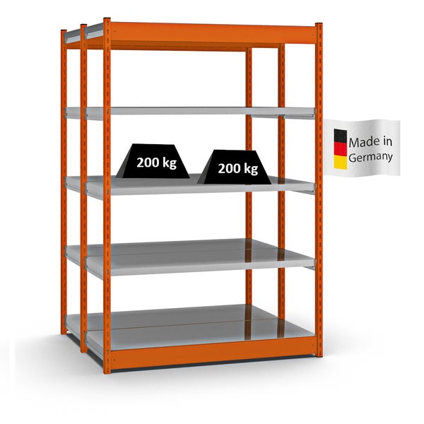 PROREGAL Fachbodenregal Stecksystem Vierkant-Profil Grundregal HxBxT 200 x 132,5 x 50 cm 2x5 Ebenen Doppelseitige Bauart Fachlast 200 kg Orange