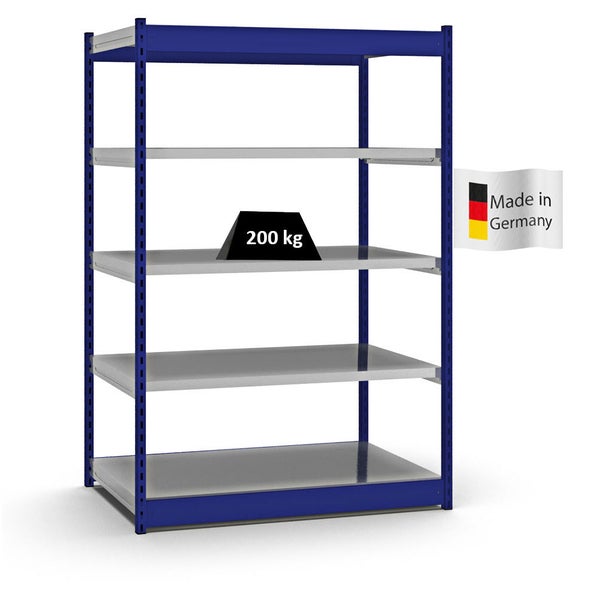 PROREGAL Fachbodenregal Stecksystem Vierkant-Profil Grundregal HxBxT 200 x 132,5 x 80 cm 5 Ebenen Einseitige Bauart Fachlast 200 kg Enzianblau