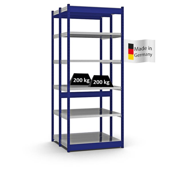 PROREGAL Fachbodenregal Stecksystem Vierkant-Profil Grundregal HxBxT 250 x 102,5 x 40 cm 2x6 Ebenen Doppelseitige Bauart Fachlast 200 kg Enzianblau