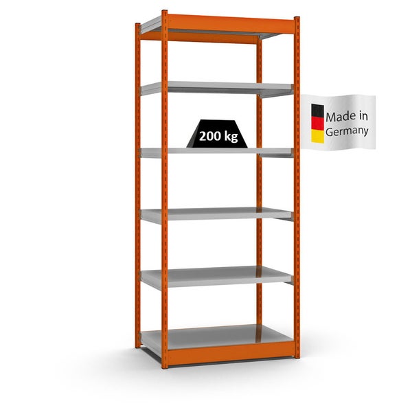 PROREGAL Fachbodenregal Stecksystem Vierkant-Profil Grundregal HxBxT 250 x 102,5 x 60 cm 6 Ebenen Einseitige Bauart Fachlast 200 kg Orange