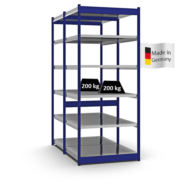 PROREGAL Fachbodenregal Stecksystem Vierkant-Profil Grundregal HxBxT 250 x 102,5 x 80 cm 2x6 Ebenen Doppelseitige Bauart Fachlast 200 kg Enzianblau