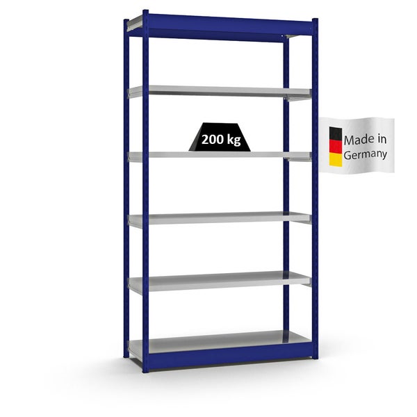 PROREGAL Fachbodenregal Stecksystem Vierkant-Profil Grundregal HxBxT 250 x 132,5 x 40 cm 6 Ebenen Einseitige Bauart Fachlast 200 kg Enzianblau