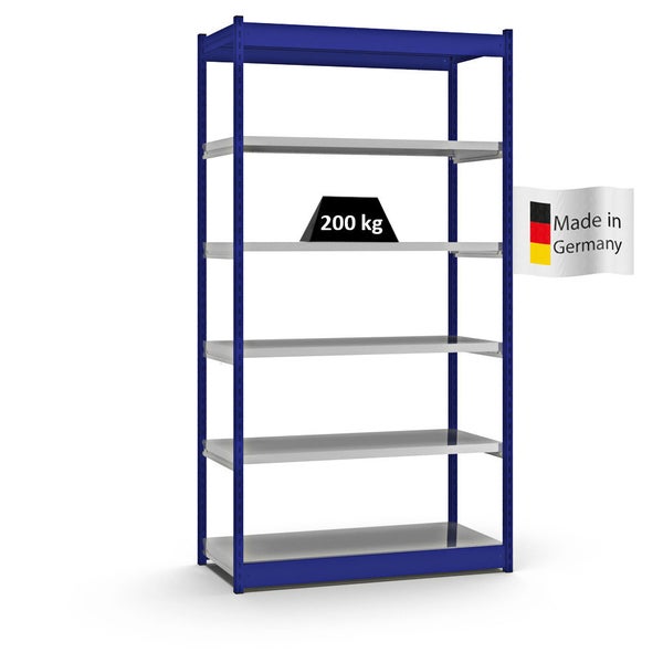 PROREGAL Fachbodenregal Stecksystem Vierkant-Profil Grundregal HxBxT 250 x 132,5 x 50 cm 6 Ebenen Einseitige Bauart Fachlast 200 kg Enzianblau