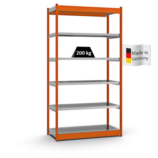 PROREGAL Fachbodenregal Stecksystem Vierkant-Profil Grundregal HxBxT 250 x 132,5 x 50 cm 6 Ebenen Einseitige Bauart Fachlast 200 kg Orange