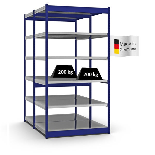 PROREGAL Fachbodenregal Stecksystem Vierkant-Profil Grundregal HxBxT 250 x 132,5 x 80 cm 2x6 Ebenen Doppelseitige Bauart Fachlast 200 kg Enzianblau