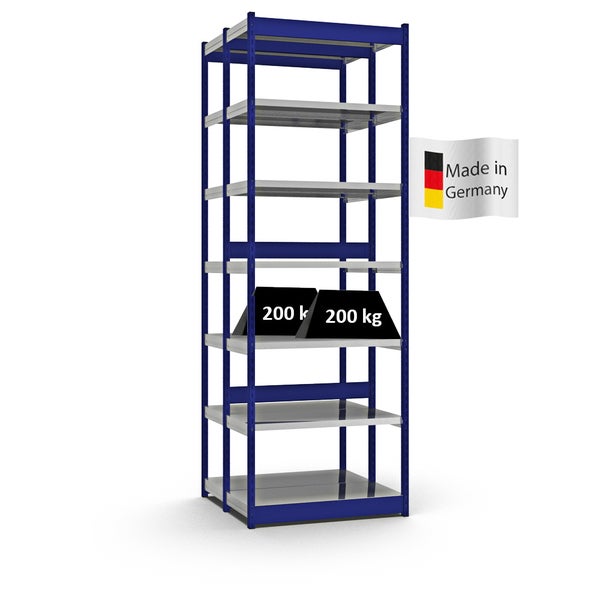 PROREGAL Fachbodenregal Stecksystem Vierkant-Profil Grundregal HxBxT 300 x 102,5 x 40 cm 2x7 Ebenen Doppelseitige Bauart Fachlast 200 kg Enzianblau
