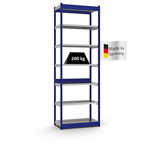 PROREGAL Fachbodenregal Stecksystem Vierkant-Profil Grundregal HxBxT 300 x 102,5 x 40 cm 7 Ebenen Einseitige Bauart Fachlast 200 kg Enzianblau