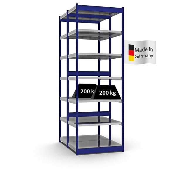 PROREGAL Fachbodenregal Stecksystem Vierkant-Profil Grundregal HxBxT 300 x 102,5 x 60 cm 2x7 Ebenen Doppelseitige Bauart Fachlast 200 kg Enzianblau