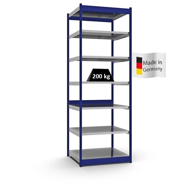 PROREGAL Fachbodenregal Stecksystem Vierkant-Profil Grundregal HxBxT 300 x 102,5 x 80 cm 7 Ebenen Einseitige Bauart Fachlast 200 kg Enzianblau