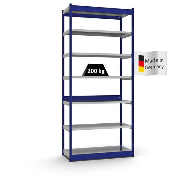 PROREGAL Fachbodenregal Stecksystem Vierkant-Profil Grundregal HxBxT 300 x 132,5 x 50 cm 7 Ebenen Einseitige Bauart Fachlast 200 kg Enzianblau