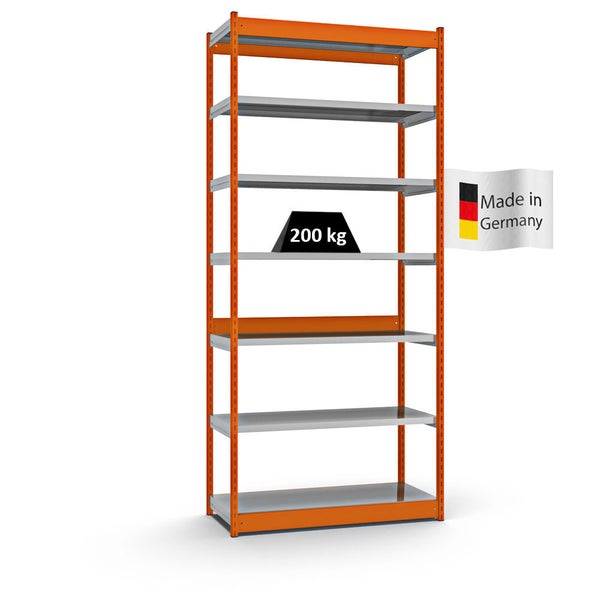 PROREGAL Fachbodenregal Stecksystem Vierkant-Profil Grundregal HxBxT 300 x 132,5 x 50 cm 7 Ebenen Einseitige Bauart Fachlast 200 kg Orange