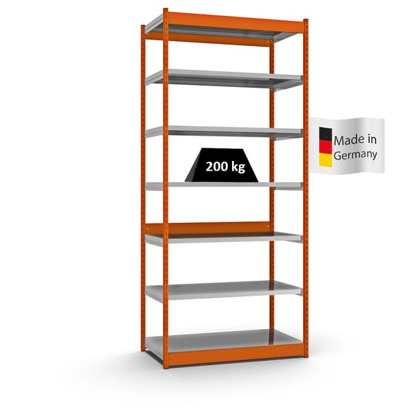PROREGAL Fachbodenregal Stecksystem Vierkant-Profil Grundregal HxBxT 300 x 132,5 x 60 cm 7 Ebenen Einseitige Bauart Fachlast 200 kg Orange