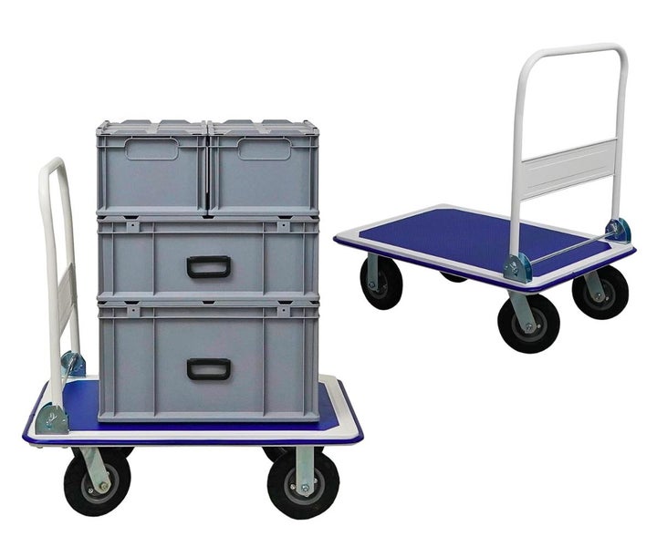 Hergestellt aus robusten Stahlrahmen bietet der Transportwagen eine beeindruckende Stabilität und Haltbarkeit, die für den täglichen Gebrauch unerlässlich ist. Die pulverbeschichteten Metallteile sorgen dafür, dass sie über lange Zeit rostfrei bleibt, selbst bei Betrieb und Lagerung in feuchten Kellern oder Lagerhallen.