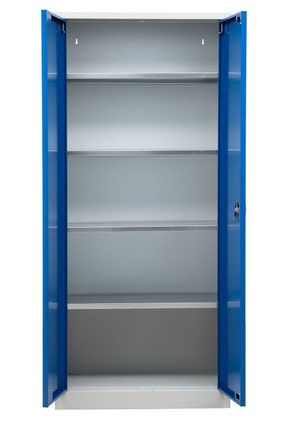 PROREGAL Flügeltürenschrank Badger 4 Fachböden Eurolock Griff Sockel HxBxT 180 x 80 x 38 cm Grau-Blau Verzinkt