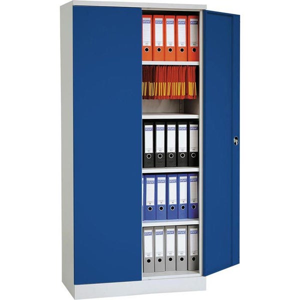 PROREGAL Flügeltürenschrank Badger 4 Fachböden Eurolock Griff Sockel HxBxT 195 x 92 x 42 cm Grau-Blau Lackiert
