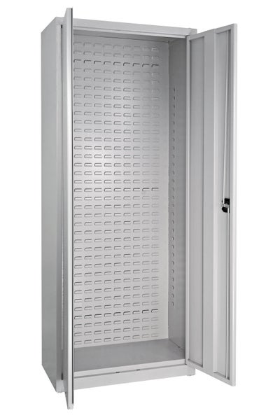 PROREGAL Flügeltürenschrank Owl mit Schlitzplatte HxBxT 193 x 78 x 38 cm Lichtgrau
