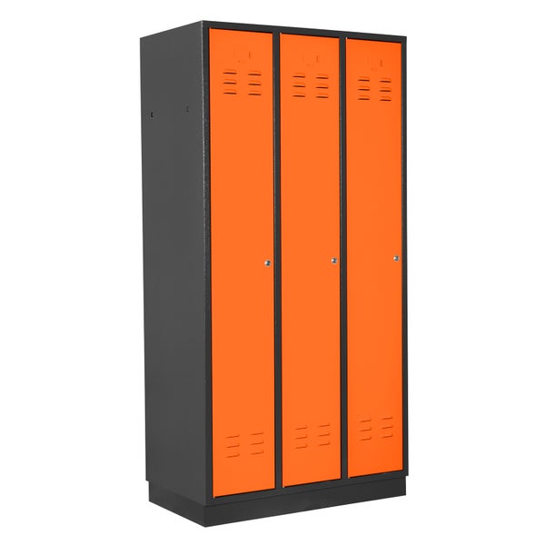 PROREGAL Garderobenschrank Ermine mit 3 Türen | HxBxT 178x89x50cm | Anthrazitgrau/Orange | Spind, Aufbewahrungsspind, Arbeitsschrank