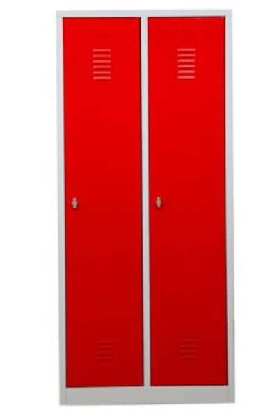 PROREGAL Garderobenspind Camel 2-Fach Mit Pro-Aufteilung HxBxT 180 x 80 x 50 cm Vorhängeschloss Grau-Rot