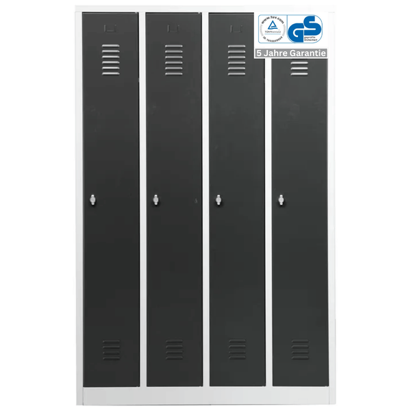 PROREGAL Garderobenspind Camel 4-Fächer HxBxT 180 x 117 x 50 cm Vorhängeschloss Grau-Anthrazit