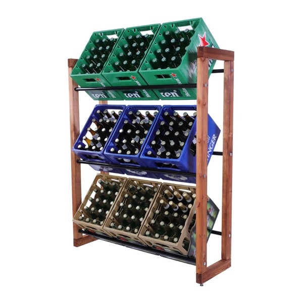 Mit einer Tiefe von 32 cm und einer Breite von 82 oder 112 cm für jeweils 2 oder 3 Kisten pro Ebene passt es ideal in viele verschiedene Räume und sorgt für eine aufgeräumte, übersichtliche Lagerung deiner Kisten. Nicht nur Getränkekisten finden hier Platz – auch die Lagerung von Universalboxen, Gemüsekisten, Euroboxen und Leergutbehältern ist problemlos möglich. Durch die Schräglage der Getränkekisten ist eine ergonomische Entnahme von Flaschen möglich und das Umstapeln von Getränke- oder Weinkisten gehört der Vergangenheit an.