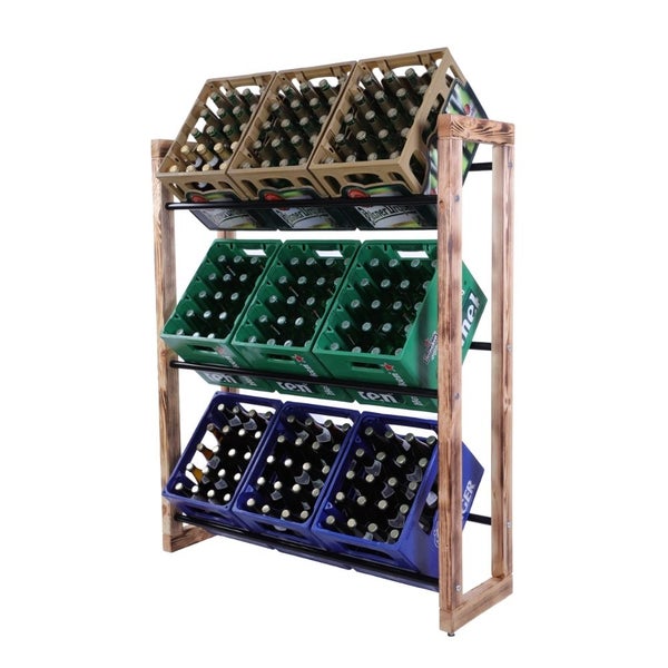 PROREGAL Getränkekistenregal HARZ HxBxT 137x112x35cm 9 Kisten auf 3 Ebenen Massives Kiefernholz Gebrannt
