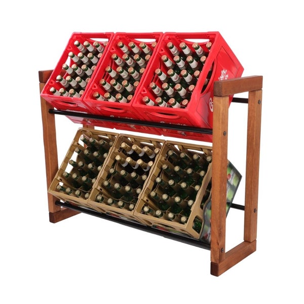 Mit einer Tiefe von 32 cm und einer Breite von 82 oder 112 cm für jeweils 2 oder 3 Kisten pro Ebene passt es ideal in viele verschiedene Räume und sorgt für eine aufgeräumte, übersichtliche Lagerung deiner Kisten. Nicht nur Getränkekisten finden hier Platz – auch die Lagerung von Universalboxen, Gemüsekisten, Euroboxen und Leergutbehältern ist problemlos möglich. Durch die Schräglage der Getränkekisten ist eine ergonomische Entnahme von Flaschen möglich und das Umstapeln von Getränke- oder Weinkisten gehört der Vergangenheit an.