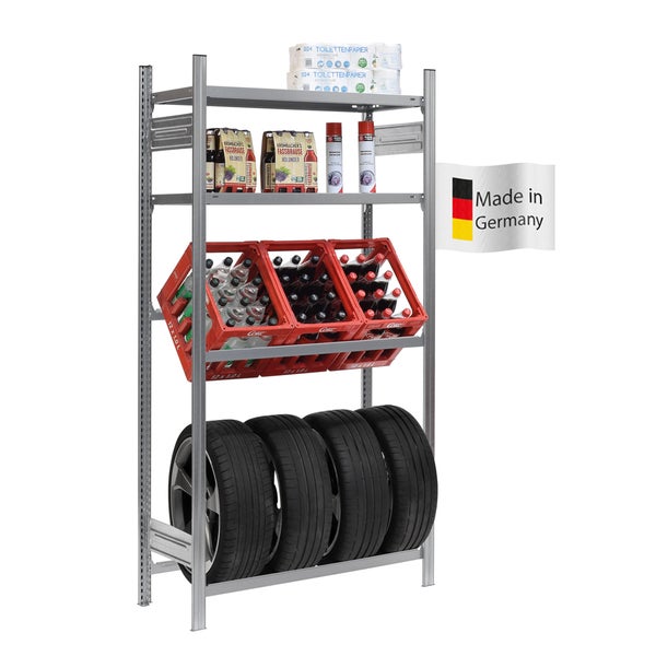 PROREGAL Getränkekistenregal & Reifenregal Chiemsee Tire Made In Germany HxBxT 200 x 106 x 43,5 cm 3 Kisten auf 1 Ebene & 4 Reifen & 2 Boards Verzinkt