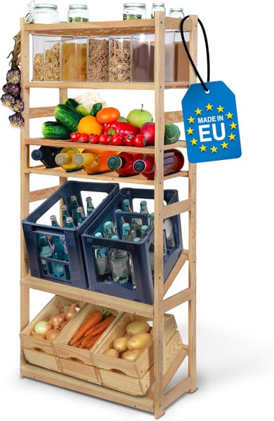 PROREGAL Getränkekistenregal SPREEWALD HxBxT 176x70x33cm 2 Ebenen für Kisten + 4 Ablagen Massives Kiefernholz Natur
