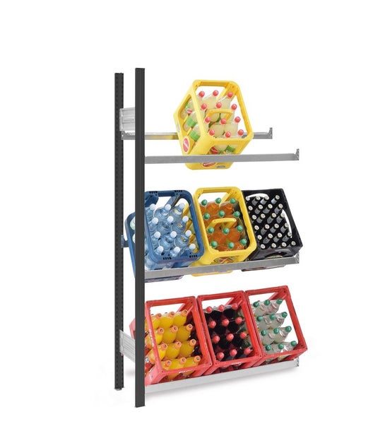 PROREGAL Getränkekistenregal Stecksystem T-Profil Anbauregal HxBxT 175 x 100 x 30 cm Fachlast 100 kg 3 Ebenen für 9 Getränkekisten Anthrazit/Verzinkt