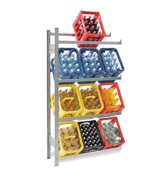 PROREGAL Getränkekistenregal Stecksystem T-Profil Anbauregal HxBxT 175 x 100 x 30 cm Fachlast 100 kg 4 Ebenen für 12 Getränkekisten Verzinkt
