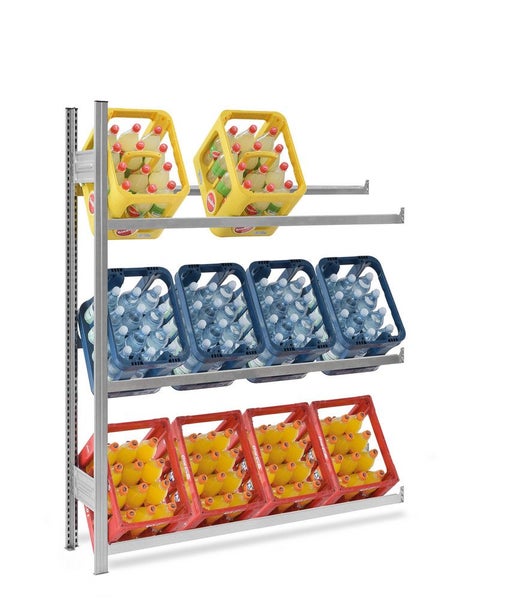 PROREGAL Getränkekistenregal Stecksystem T-Profil Anbauregal HxBxT 175 x 150 x 30 cm Fachlast 150 kg 3 Ebenen für 12 Getränkekisten Verzinkt