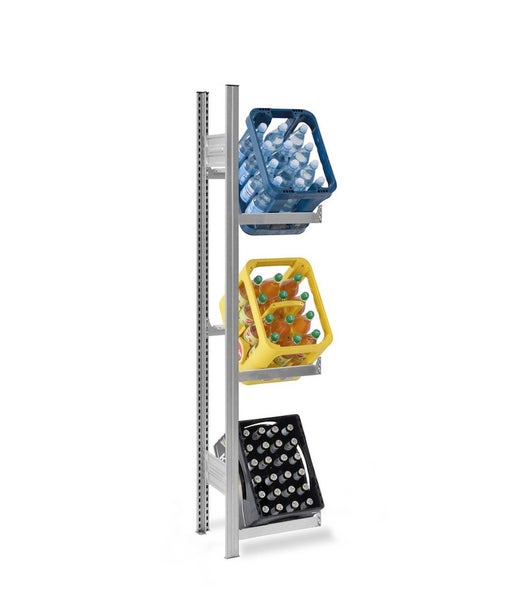 PROREGAL Getränkekistenregal Stecksystem T-Profil Anbauregal HxBxT 175 x 50 x 30 cm Fachlast 100 kg 3 Ebenen für 3 Getränkekisten Verzinkt