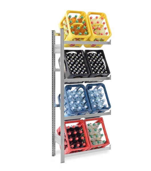 PROREGAL Getränkekistenregal Stecksystem T-Profil Anbauregal HxBxT 175 x 75 x 30 cm Fachlast 100 kg 4 Ebenen für 8 Getränkekisten Verzinkt