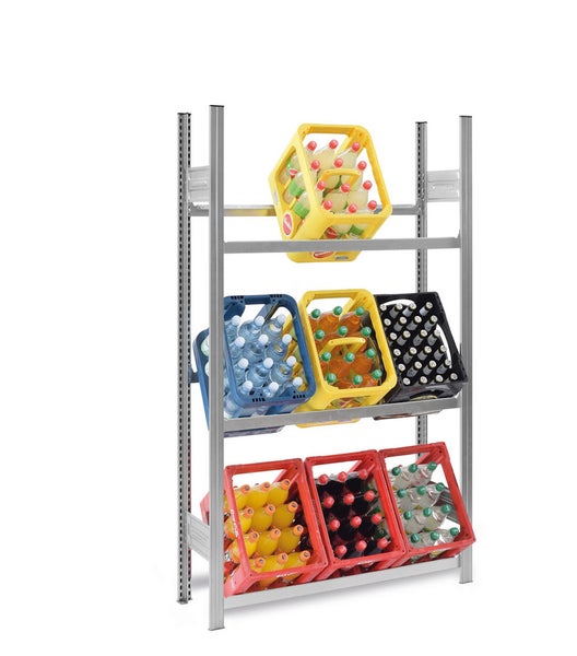 PROREGAL Getränkekistenregal Stecksystem T-Profil Grundregal HxBxT 175 x 100 x 30 cm Fachlast 100 kg 3 Ebenen für 9 Getränkekisten Verzinkt