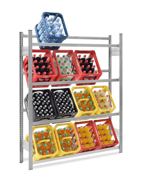 PROREGAL Getränkekistenregal Stecksystem T-Profil Grundregal HxBxT 175 x 150 x 30 cm Fachlast 150 kg 4 Ebenen für 16 Getränkekisten Verzinkt