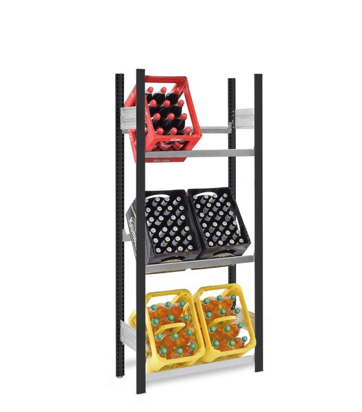 PROREGAL Getränkekistenregal Stecksystem T-Profil Grundregal HxBxT 175 x 75 x 30 cm Fachlast 100 kg 3 Ebenen für 6 Getränkekisten Anthrazit/Verzinkt